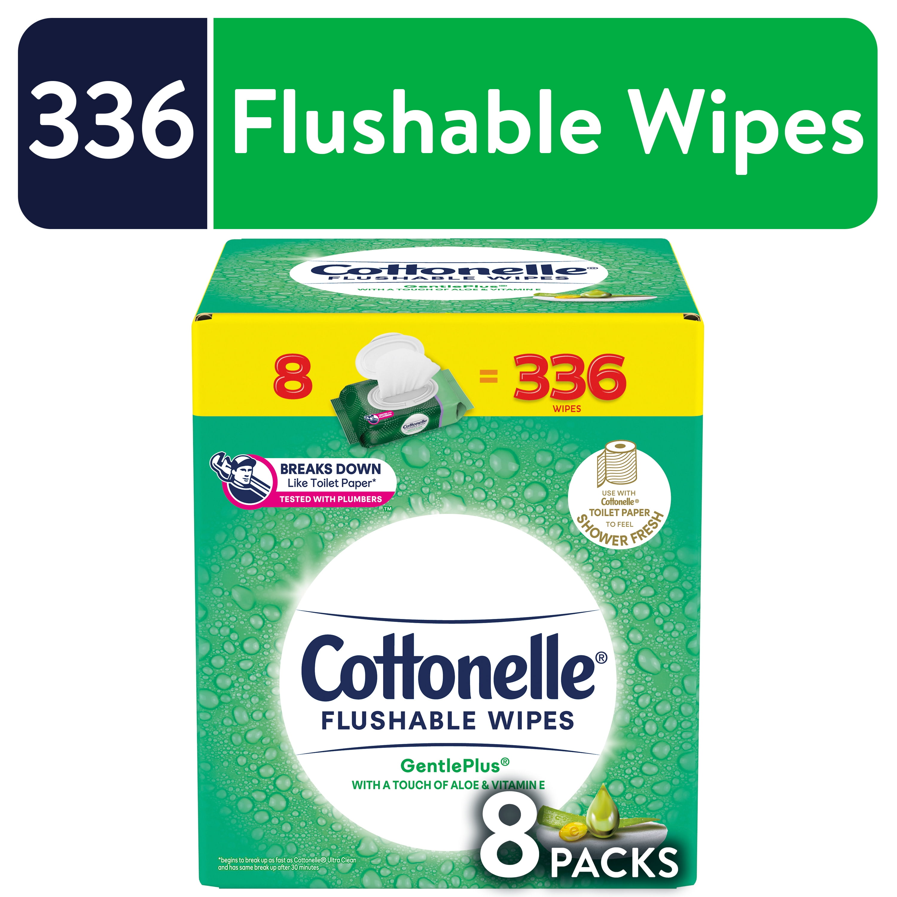 Cottonelle Gentleplus Flushable Wet Wipes 8 Flip Top Packs 336 Total Wipes Walmart Com